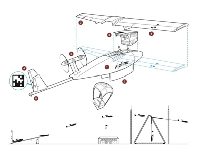 一旦Zip接近目的地,就会自动向医院发送一条短信,告知确切的到达时间。然后它会向指定的着陆区俯冲,空投下货物,回到基地。