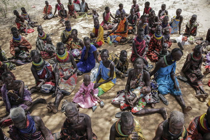 当地时间2022年5月12日,肯尼亚Lomoputh,联合国负责人道主义事务的副秘书长马丁·格里菲斯的到访,吸引不少村民围观。