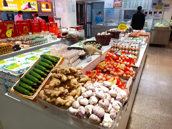 5月13日一早,记者走访京饮华天商厦时发现,超市内货架上商品品类齐全,米面粮油、副食调料、肉蛋菜奶等民生产品,均库存充足。京饮华天商厦卖场部经理郝利民告诉记者,近期消费者购物需求增加,商厦也增加了进货量。“以前是15天周转率,现在提高到了30天,库存加了一倍。”郝利民介绍道,“我们想提醒大家的是,无需囤货,随吃随买,以免浪费。”