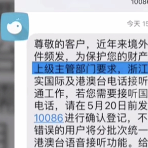 中国移动浙江相关负责人回应称,此事属实,公司正通过短信形式分批次通知客户。若用户需要接听国际及港澳台电话,需发送1219至10086进行确认登记。