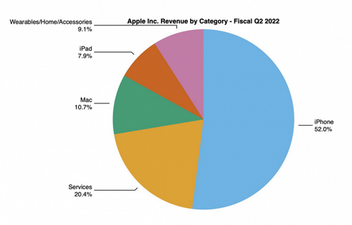 根据苹果公司2022年Q2财报数据显示,来自Apple Music、iCloud和App Store费用等服务达到198.2亿美元,同比增长17.28%,超过了除iPhone以外其它所有硬件的收入,成为苹果公司的第二增长曲线。