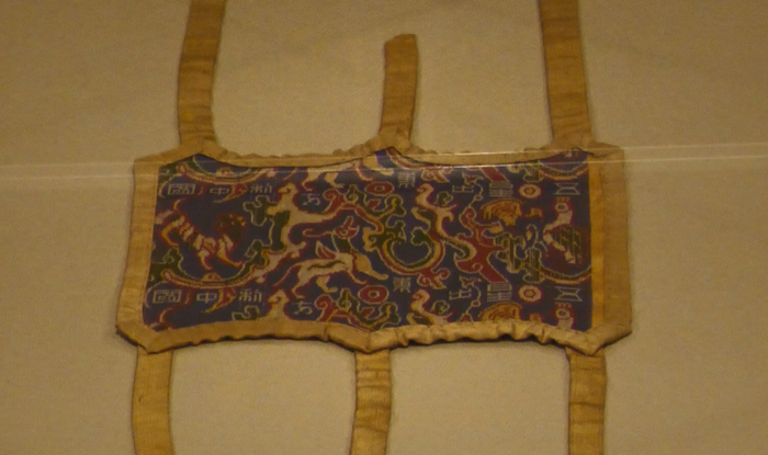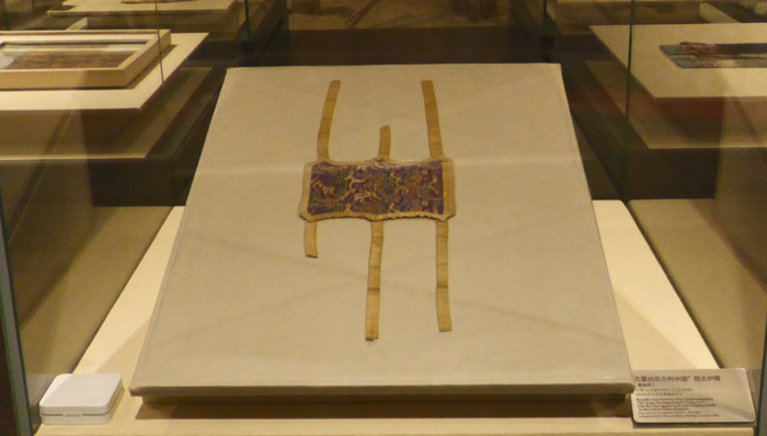 一平方厘米的织锦中,经线密度高达220根,纬线密度也有48根,而且还是5种不同色彩织成的,尽管周围还布展了许多珍贵的织锦,但“五星出东方”护膊仍旧是展厅中最显眼的。