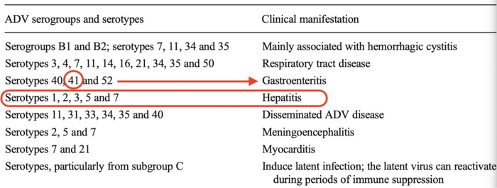可查资料显示,就以这次被高度怀疑的腺病毒41型而言,多导致肠胃炎,其主要组织嗜性是肠胃道,而不是肝脏。