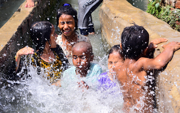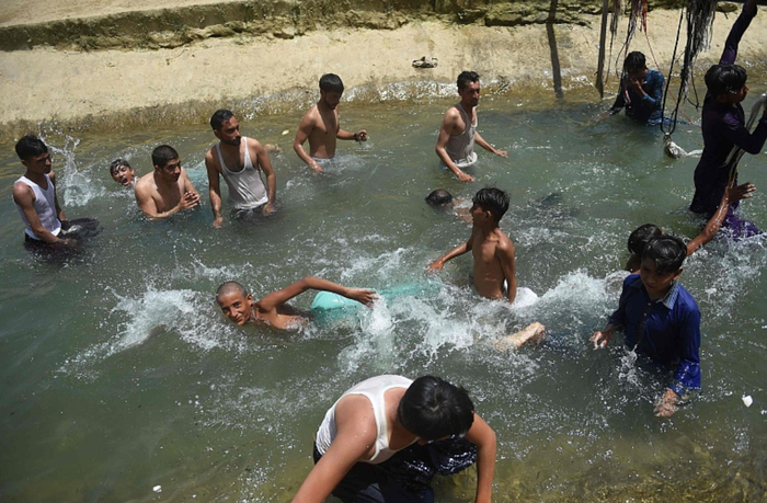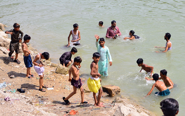 巴基斯坦多地“热浪来袭” 民众水中降温