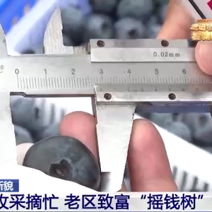 整个怀宁县今年蓝莓的产量能够在2.1万吨左右,一产的产值能达到10亿元左右。当地还不断在蓝莓的产业链深加工上做起了文章,目前整个怀宁县蓝莓的产值已经突破了40亿元。正是因为种植蓝莓,老区发展起了这样一个蓝莓产业链,现在围绕产业链已经吸纳了超过11000人就地就业,每人平均每年增收8000元以上。应该说现在一棵棵小小的蓝莓树已经成为一棵棵摇钱树,托起老区人的增收致富梦。