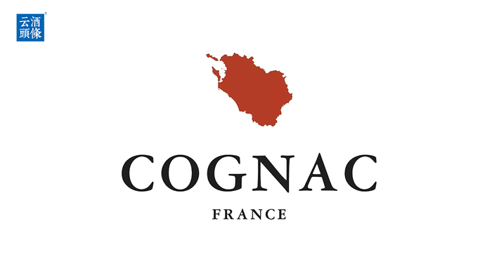 干邑法定产区表示,包括图、文两部分,包括红色的干邑产区轮廓,以及法国干邑字样。