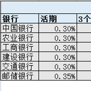 当前国有银行定期存款利率最高均未超过3%,其中邮储银行2年期和3年期存款利率高于其他国有银行,为2.35%、3%,分别高出0.1个百分点和0.25个百分点。