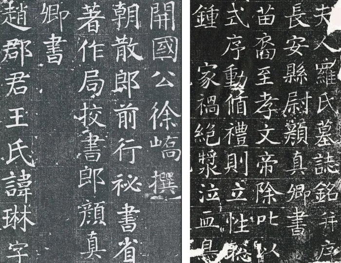 左:《王琳墓志》拓片 局部 右:《罗婉顺墓志》拓片 局部