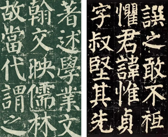 左:《颜勤礼碑》局部 右:《颜家庙碑》局部