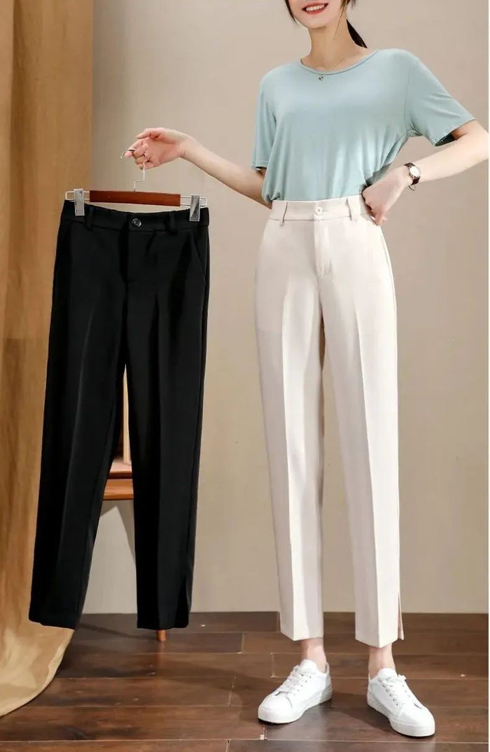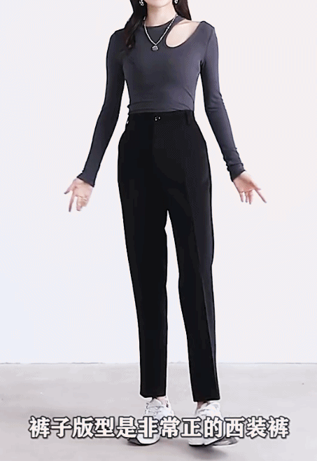 舒适好穿、遮肉显瘦,开叉烟管西裤还有个优点在于:巨好搭!各式上衣随便搭,都能穿出时髦感!