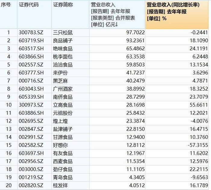 (休闲食品板块2021年营收)