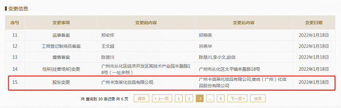 青眼发现,在销证之前,卡洛莱于2021年11月成立了一家名为广州卓妆化妆品有限公司的新公司,随后不久更名为美尚(广州)化妆品制造有限公司(下称:美尚制造),并在2022年1月新增股东珂拉琪母公司美尚股份,管理层也大换血。