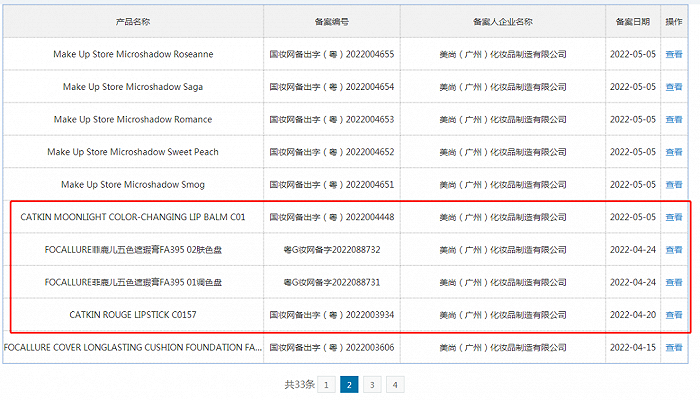 截自国家药监局国产普通化妆品备案平台