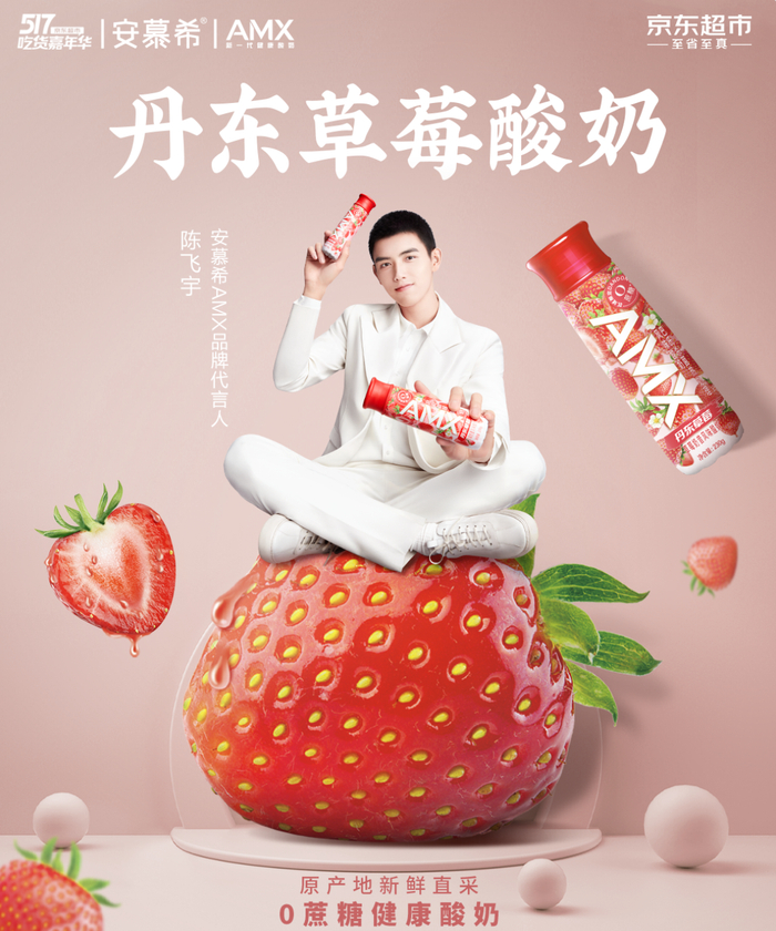 今年京东超市517吃货节,京东超市与安慕希将进一步合作,联动生鲜及全域吃货节流量,把丹东草莓口味酸奶这样的产品打造成千万级大单品。