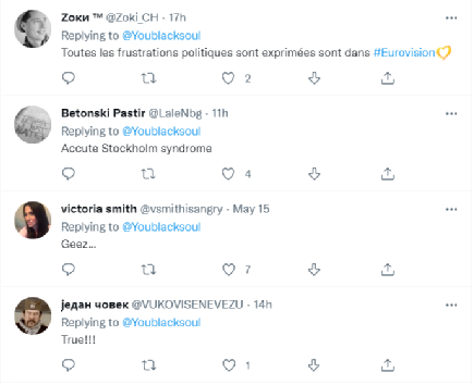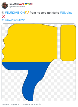 除了立陶宛和波兰网民外,一些对自己国家在比赛中被乌克兰“比下去”感到不满的欧洲网民,也显得情绪非常激动,甚至有人给乌克兰做了不少嘲讽的表情包,指责乌克兰评委“忘恩负义”。