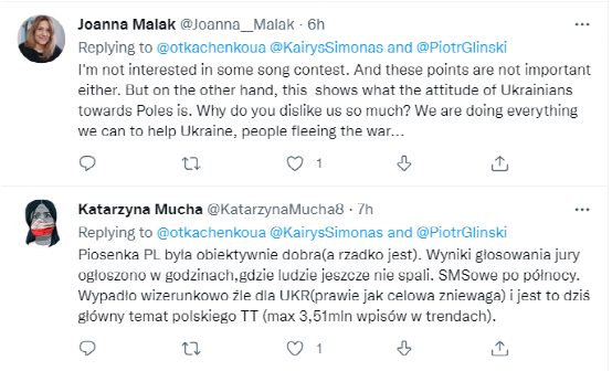 当有人为乌克兰评委辩护,认为他打0分是希望摒弃政治立场,单纯从自己专业出发打分时,许多立陶宛和波兰网民则明示或暗示说,包括自己在内的这两国民众都出于政治原因支持了乌克兰选手,乌克兰评委不能对此视而不见。