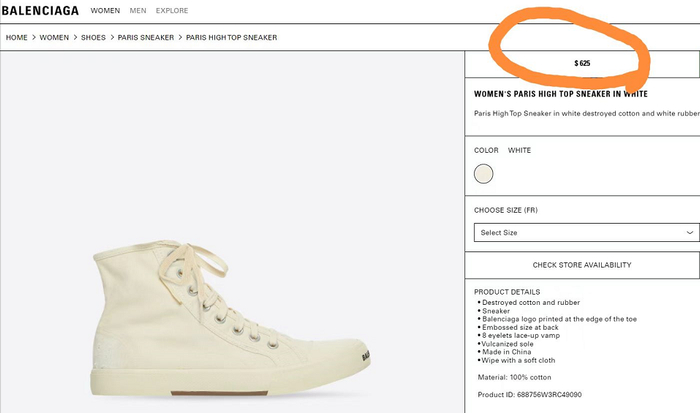 官网页面显示,这款运动鞋的“未被破坏”版本也有推出,名称显示为PARIS高帮运动鞋,售价仅为625美元,不到“完全摧毁”版本售价的一半。