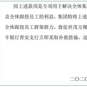 2020年11月25日,一封在网络上广为流传的《致福晟集团全体跟投员工的公开信》文件,再次将世茂和福晟之间的矛盾和冲突暴露出来。随后,福晟集团对此进行了辟谣。