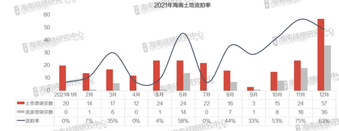 2021年海南土地流拍率为37%,下半年的流拍率更是高达51%。作为全省去年唯一有市场化商品房宅地成交的城市,海口棚改区在2021年上半年相继拍出楼面价13868元/㎡、15059.1元/㎡的高价宅地,地价走高,导致下半年开发拿地积极性急转直下。