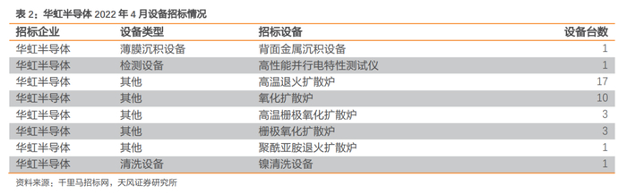 华虹半导体4月共招标37台设备,其中刻蚀设备、氧化扩散设备、退火设备采购数量最大。