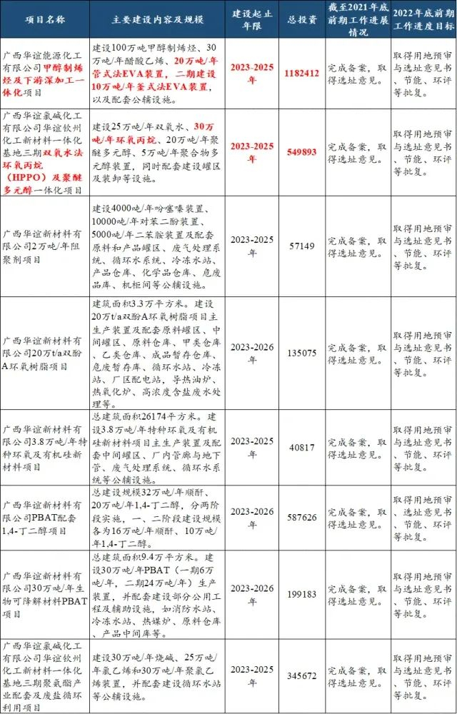 以下为2022年广西钦州市将重点推进的几大拟建石化项目。