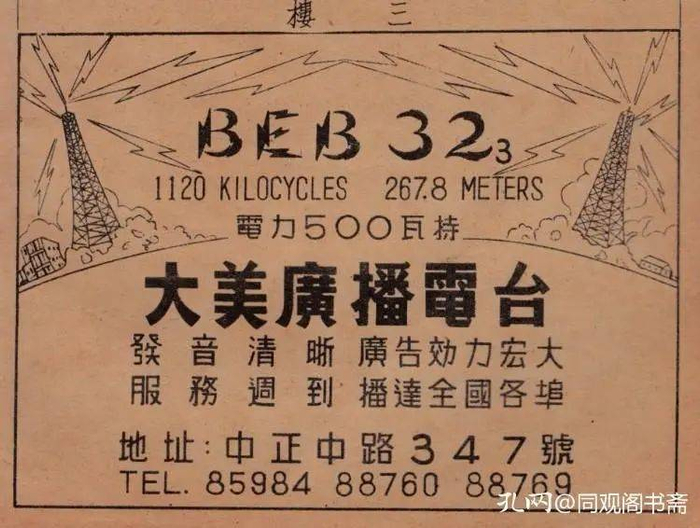 我手中有一张名为“大美广播电台”的广告,广告词写到:“发音清晰,广告效率宏大,服务周到,播达全国各埠”。可见当时广播电台在报纸上刊登广告,为其宣传广播与广告。
