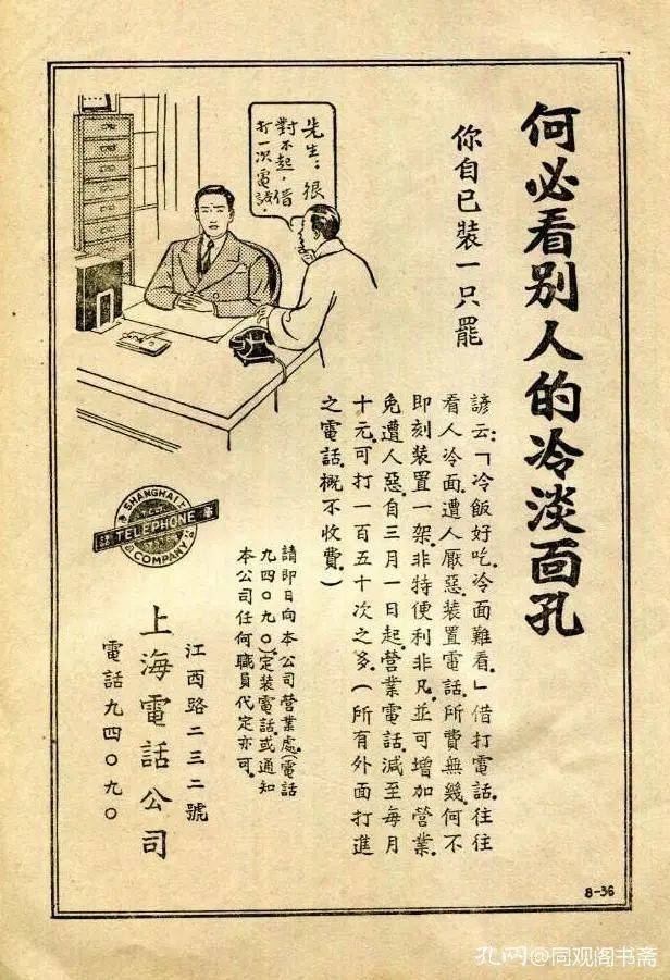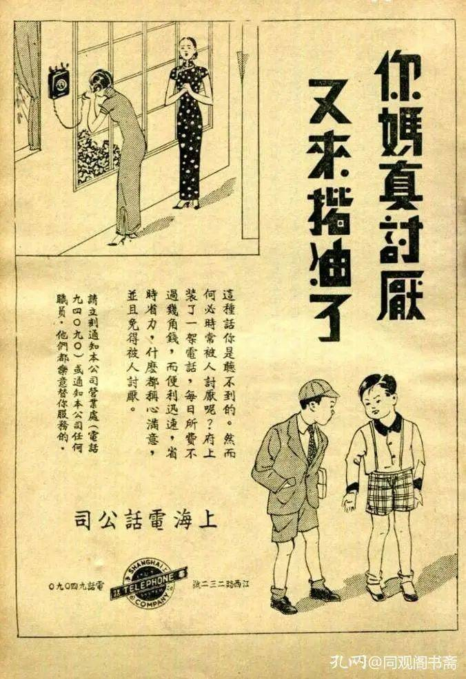 “这种话你是听不到的。然而何必时常被人讨厌呢?府上装了一架电话,每日所费不过几角钱,而便利迅速,省时省力,什么都称心满意,并且免得被人讨厌。”