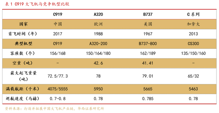 ► C919性能优异,或将逐步替代波音737MAX、空客A320neo系列,市场空间巨大。