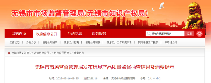 中国质量新闻网讯 据江苏省无锡市市场监督管理局网站2022年5月16日消息,2022年度,无锡市市场监督管理局对玩具产品质量进行了监督抽查。共抽查产品20批次,发现2批次产品不合格,不合格发现率为10%。