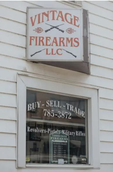 ·根德隆购买凶器的枪店,上面写着其商品包括“左轮手枪、手枪和军用步枪”。