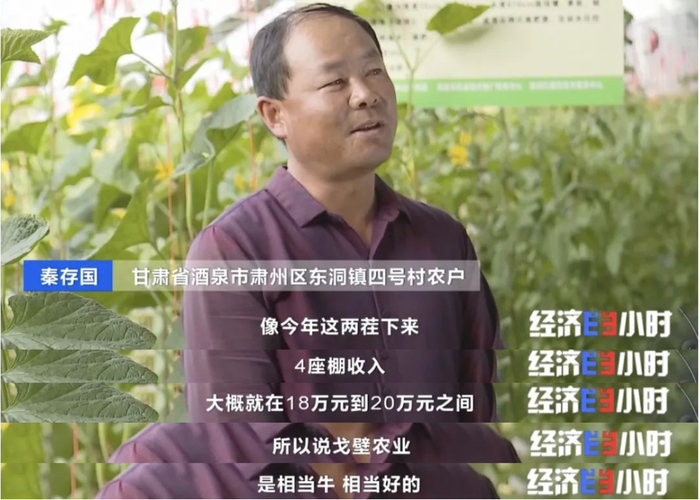酒泉市肃州区地处巴丹吉林沙漠边缘,有效耕地面积只有60多万亩,而戈壁滩面积有100多万亩。智慧大棚让贫瘠的戈壁滩变成了村民眼中的宝地。也吸引了越来越多外乡人的目光。