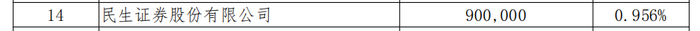民生证券股份有限公司为百裕制药的第14大股东,占比0.956%,持股数为90万股。