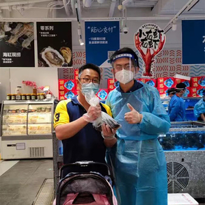 5月16日,盒马mini上海虹口万泰店成为盒马首家恢复线下营业的门店。首位入店购物的顾客是一位推着婴儿车当购物车的男士。在选购完当日清单后,他特意买了一条活鱼,并请营业员堂杀。他称:好久没买到活鱼了。