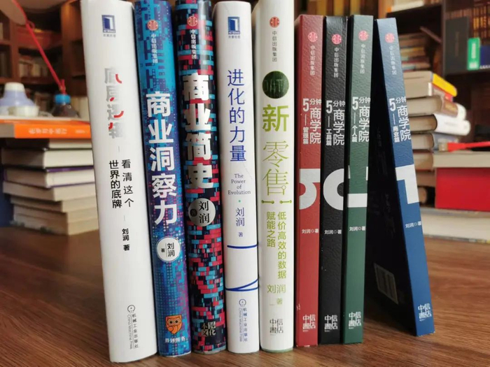 和刘润的关系,我是未见其人先闻其声。他在“得到”上的课程,从《五分钟商学院》、《商业洞察力》到《商业通识》,我全部听过。后来新东方相关部门又邀请他给新东方上过两天课。这次他出版了《底层逻辑》,我读后觉得不错,就录制了个短视频推荐,没有想到在我一人的平台上,就卖出去了16万本。这次他约我直播,既是互相交流,也是对商业逻辑的探讨。他给我寄来了一堆书:《五分钟商学院》《商业简史》《商业洞察力》的文字版,还有《新零售》和《进化的力量》两本。于是我赶紧手忙脚乱翻阅这些书,免得直播的时候尬聊。幸好我对他的语言特色和理论模型比较熟悉,所以在直播前真的把这些书翻阅完毕了。