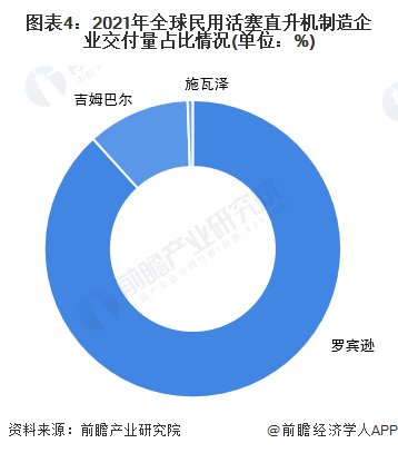 2021年,罗宾逊直升机公司的活塞直升机交付量最多,占全球总量的比重超过80%,占据全球活塞直升机制造市场绝对的主导地位。