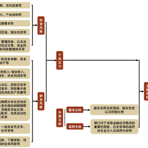 ► 政府支持:银行对于所在地金融经济稳定的重要性程度较高,因此较易获得政府的支持。银行获得政府支持的程度与银行的规模、当地银行的数量、控股股东性质等有关。