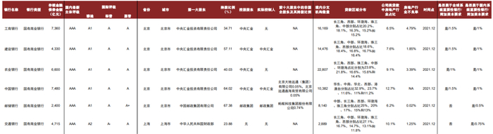 图表2:国有商业银行基本信息及经营数据(截至2022年5月16日)
