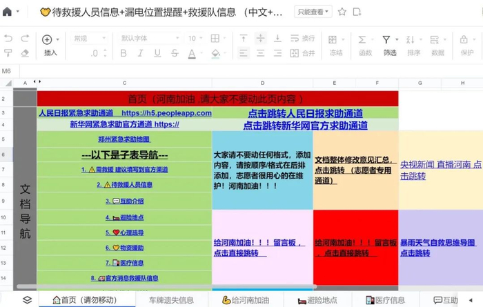 郑州水灾爆发当晚,一位家乡在河南的大学生Manto,用腾讯文档创建了一个在线表格《待救援人员信息》,表格有求助者信息、避险地点、漏电地区、救援信息等,迅速刷屏。腾讯文档团队紧急扩容,一天多时间更新了450多个版本,浏览量超过250万次。这张表格现在更名为“河南暴雨线上综合信息服务平台”。