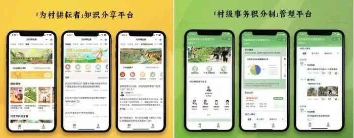 如果你用小程序打开“为村耕耘者”或“村级事务积分制管理”,可以看到一个简明易用的服务乡村振兴的综合性培训平台和村级事务管理平台。