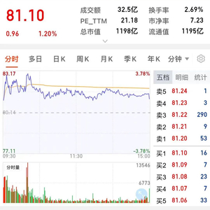同花顺数据显示,截至5月16日收盘,天齐锂业收报81.1元/股,上涨1.2%,总市值为1198亿元。