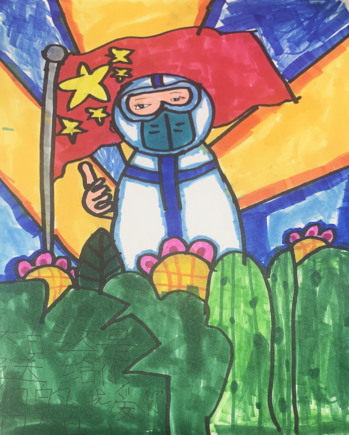 绘画记疫⑦|小朋友画了“大白”,长大要去做“大白”