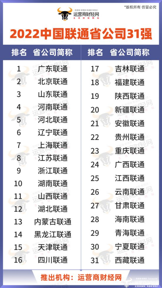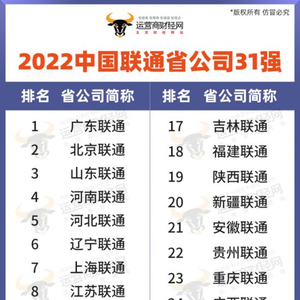 近期,运营商财经网独家推出“2022中国联通省公司31强”排行榜,其中清晰呈现了中国联通北方十家省公司的发展情况,排在前五的分别是北京联通、山东联通、河南联通、河北联通以及辽宁联通,实力都非常强。