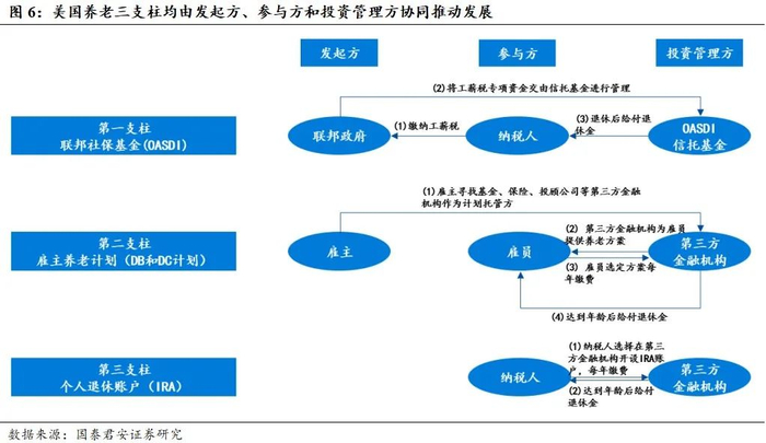 我们认为,美国养老第三支柱实现快速发展,背后由制度和政策共同推动,主要三大特征:1)账户制运作;2)税优政策;3)市场化投资管理。