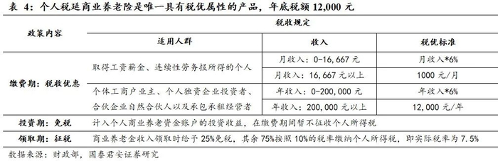 政策层面制定统一的税优支持,税优额度尚有提升空间