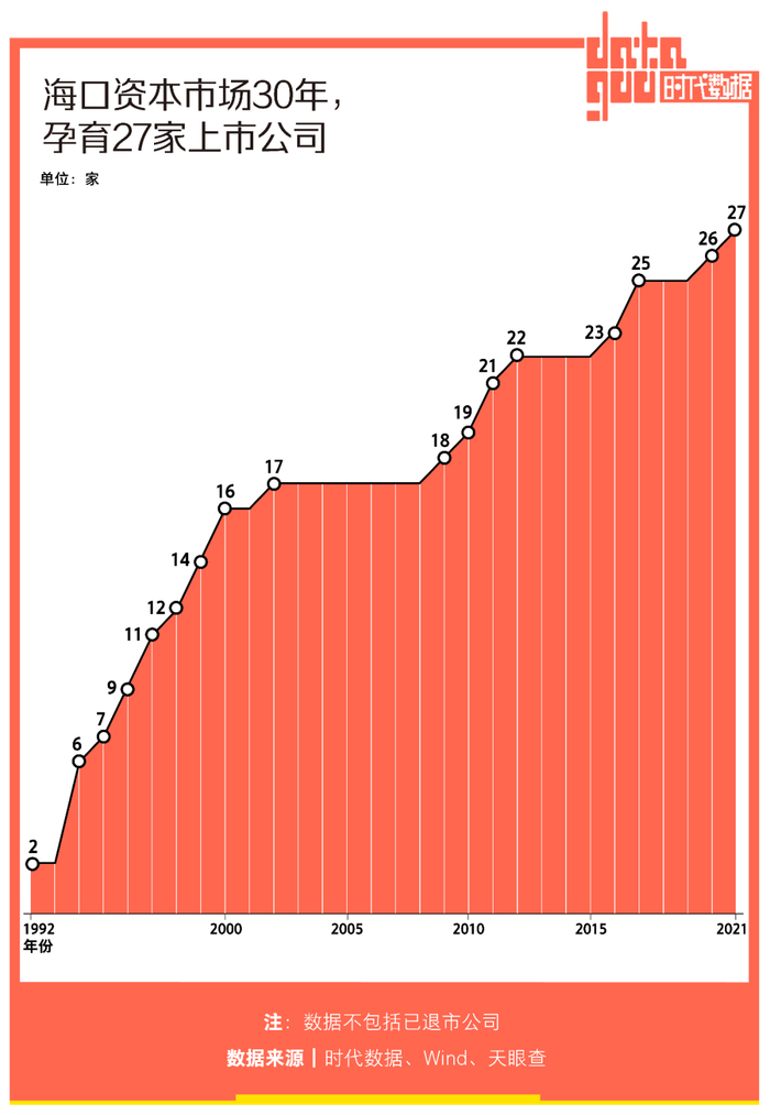 自此,海口资本市场已经历30年风雨。截至2022年5月16日,海口一共拥有A股上市公司27家。其中,2000年之前是海口企业登陆资本市场比较集中的时期,现仍有16家公司是在2000年及以前上市的。此外,2021年海口诞生了首家科创板上市公司金盘科技(688676)。