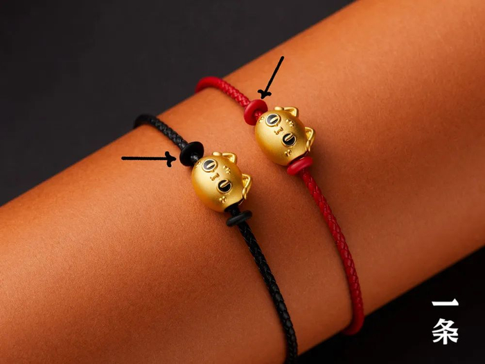 除了红绳款,还可以搭配黑色手绳,男女戴都好看,搭配成情侣款也很合适。