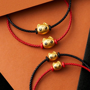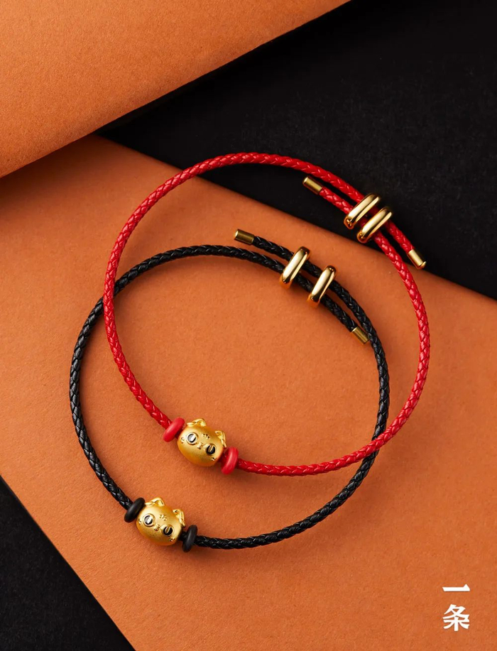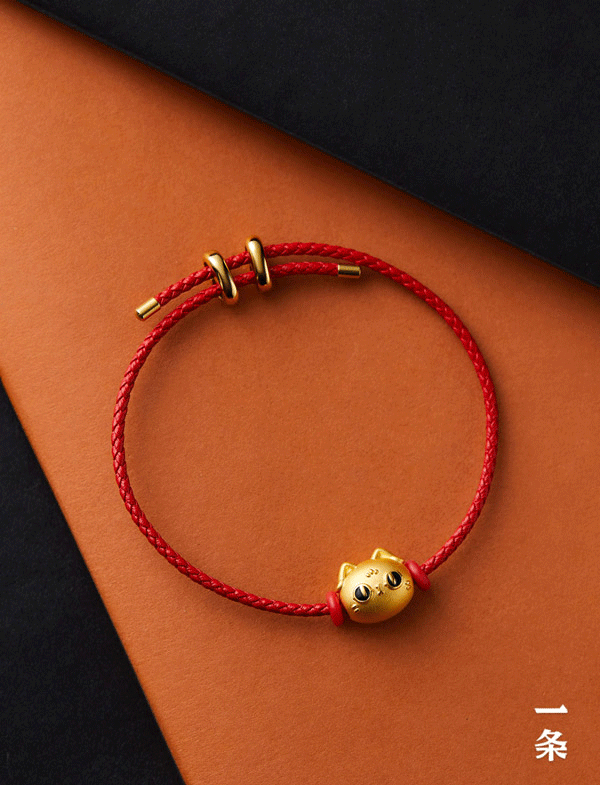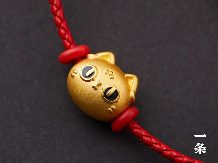 Q版足金萌猫坠子红绳手链,现一条生活馆有售▼
