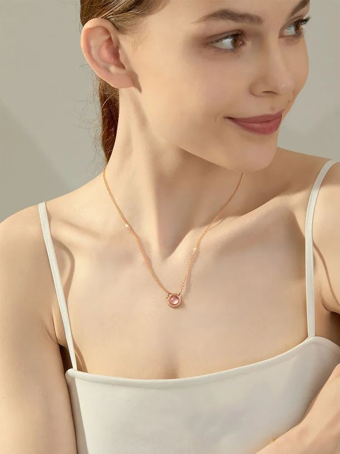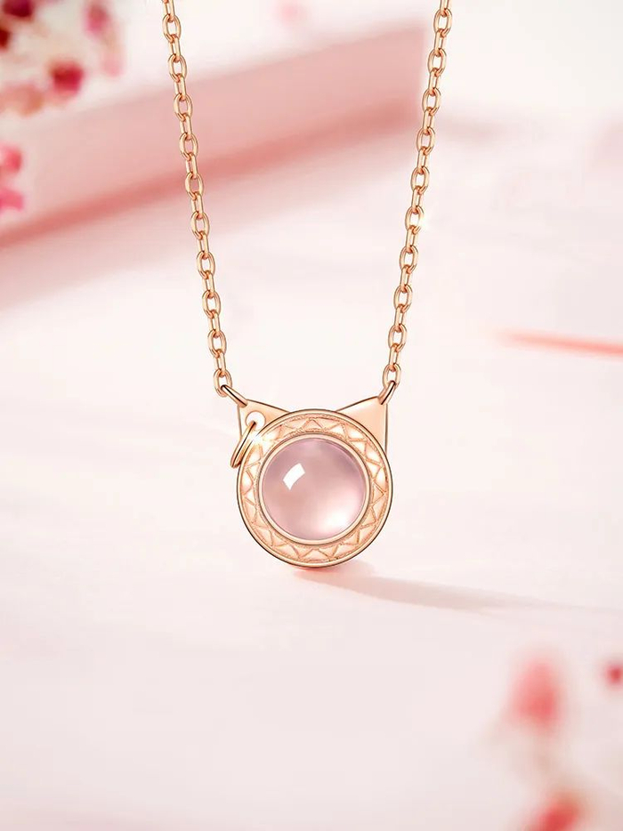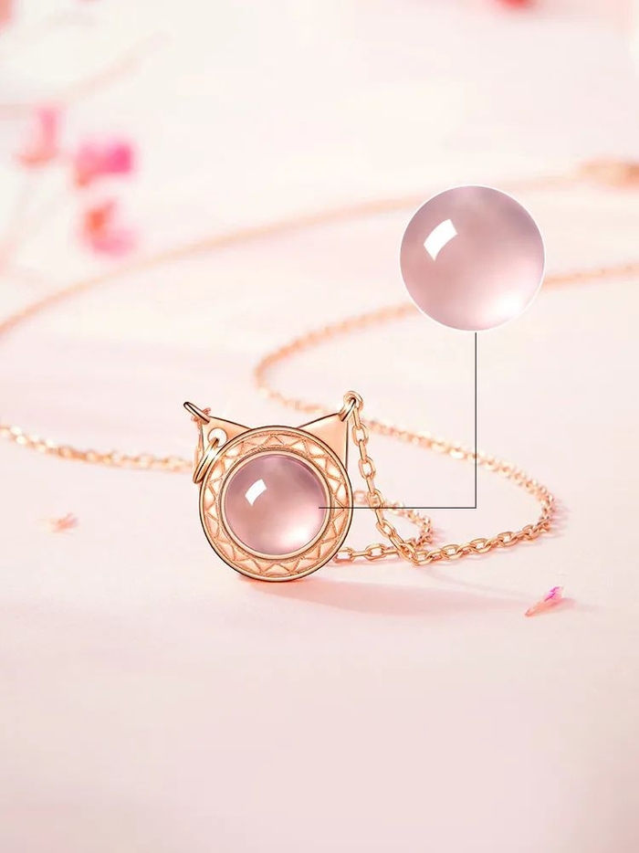 粉晶萌猫坠子玫瑰金色项链,现一条生活馆有售▼