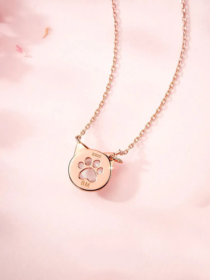 萌猫造型的坠子,提取了盖亚·安德森猫青铜像项圈的纹路,作为细节点缀其中,立体又灵动。