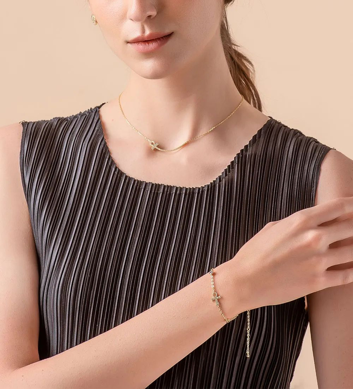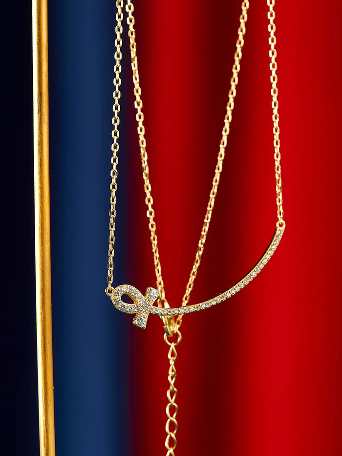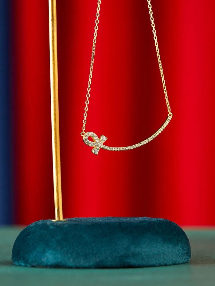 铜厚镀18K金安卡吊坠,镶满迷你锆石。
